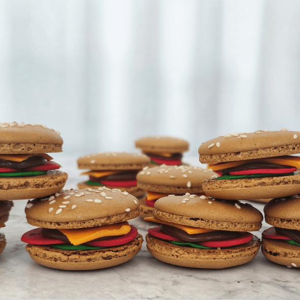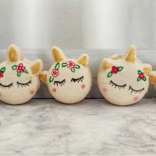 אפשרות לקבל מקרונים בצורות שונות לבחירתכם ניתן לבחור עד 8 טעמים שונים לכל הזמנה הטעמים של המקרונים: שוקולד מריר, אננס, קוקוס, פינה קולדה, פסיפלורה, בננה, שוקו בננה, תות, פטל, לימון, פיסטוק, קינדר בואנו, ריסס, קרמל מלוח וקפה