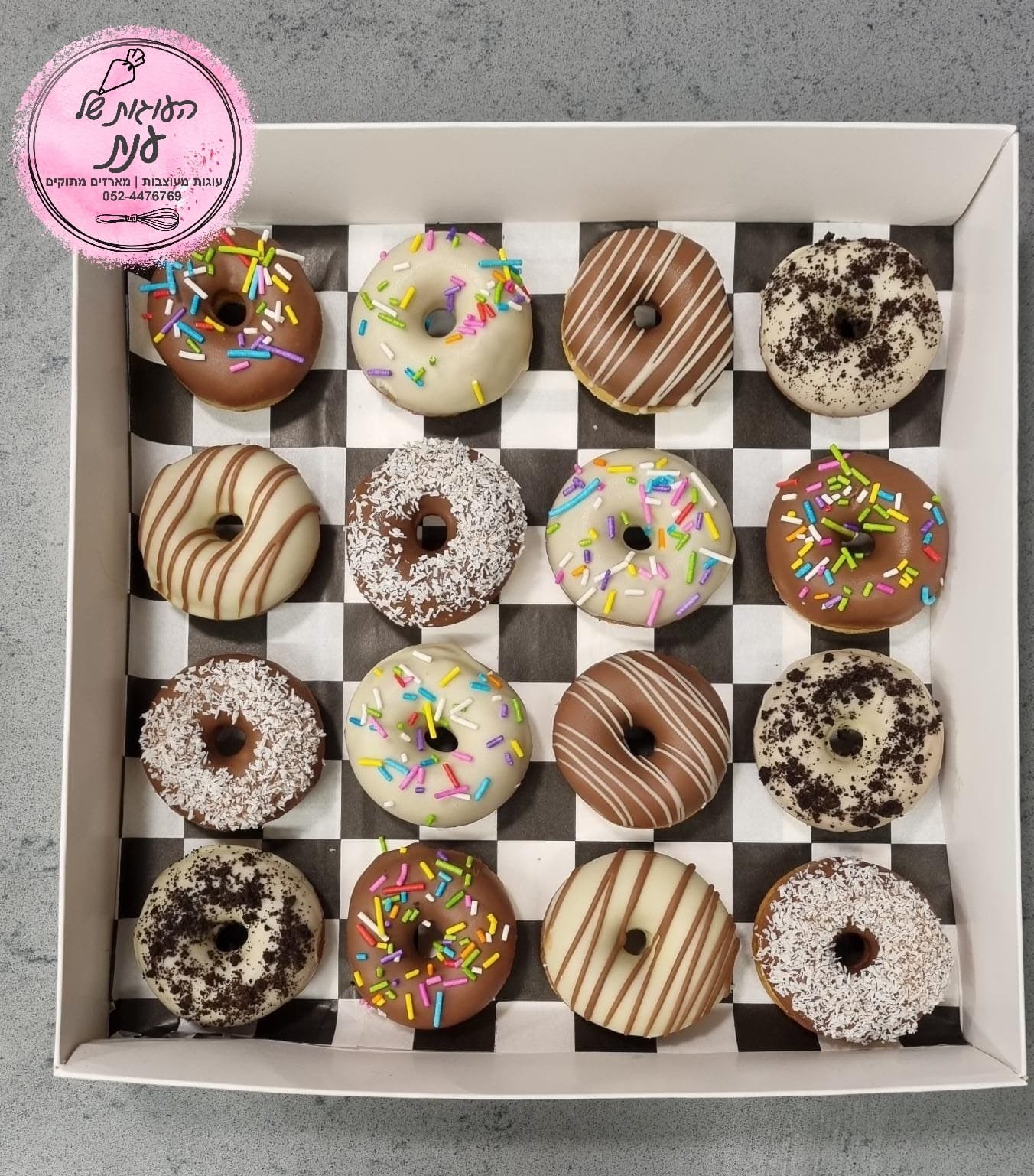 | גודל המארז | מארז 6 דונאטס, מארז 16 דונאטס, מארז 24 דונאטס, מארז 10 דונאטס |
